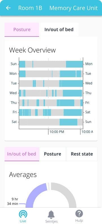 Set up personal alerts for residents who are at risk of falling. See who is going to leave the bed up to 70 seconds in advance.